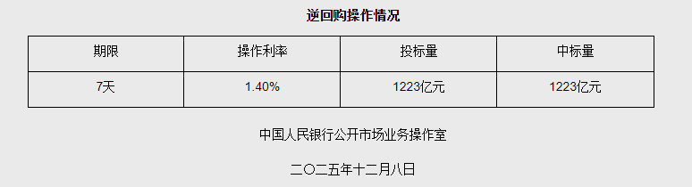 12月8日电 据央止网站新闻,2025年12月8日华夏公民银止以牢固利率、数目投标体例启铺了1223亿元7天期顺归买操纵。详细环境以下:图源:央止网站截图